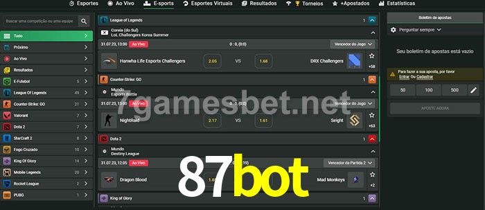 A aposta 87bot oferece aos jogadores a experiência mais conveniente de apostas em eSports!